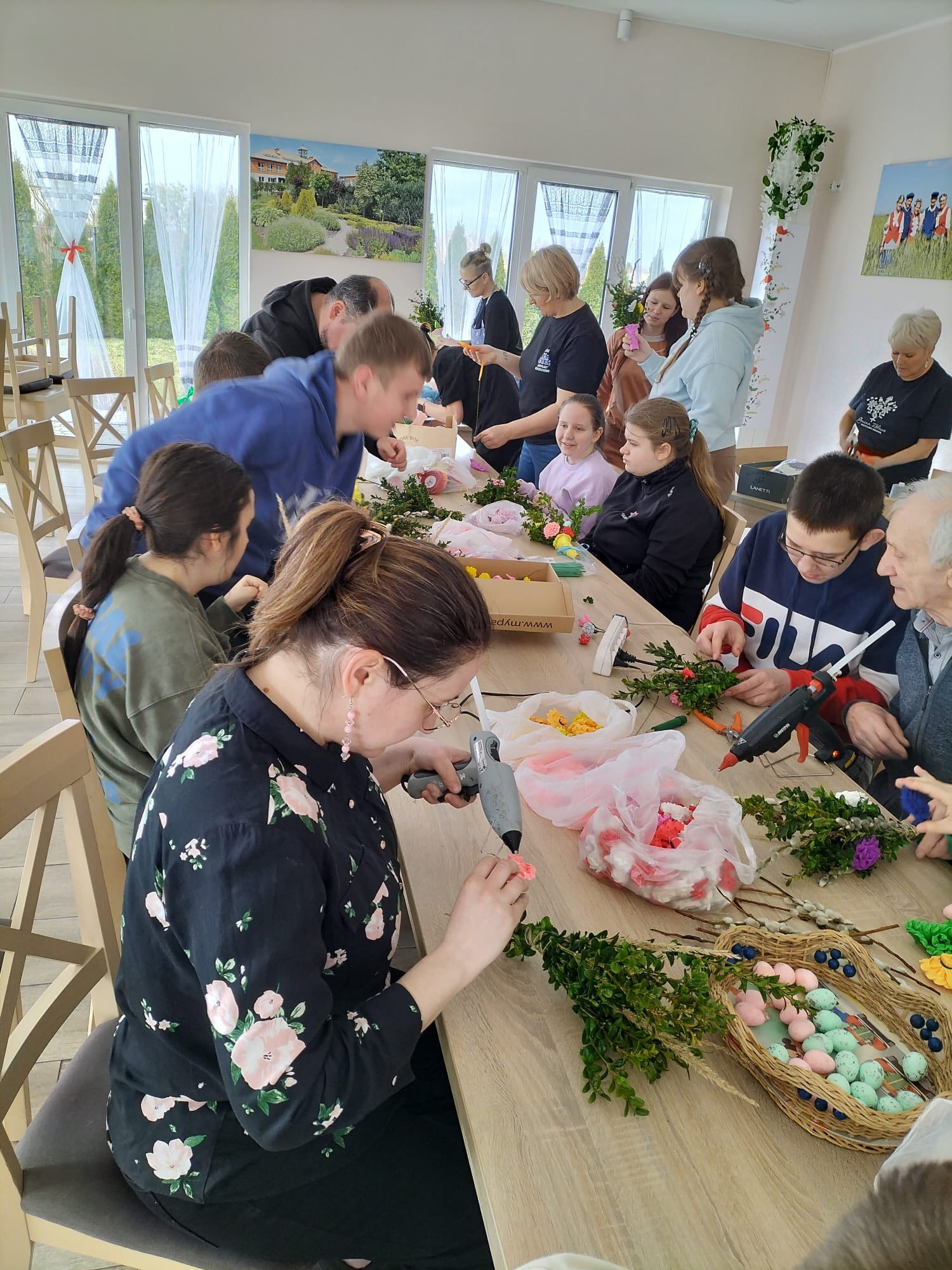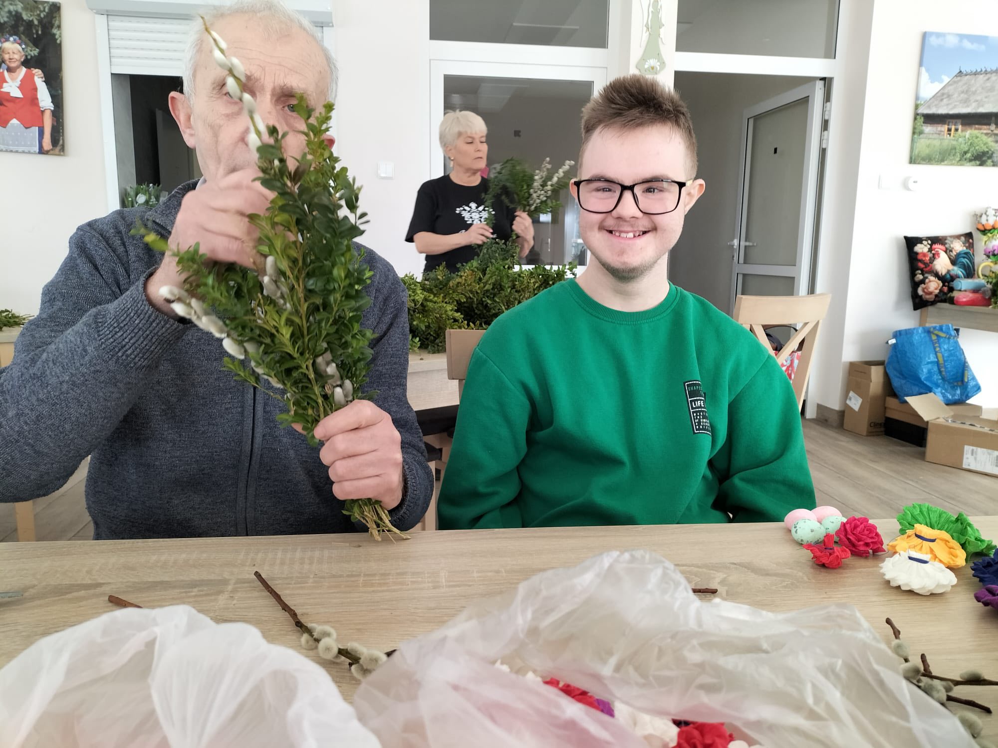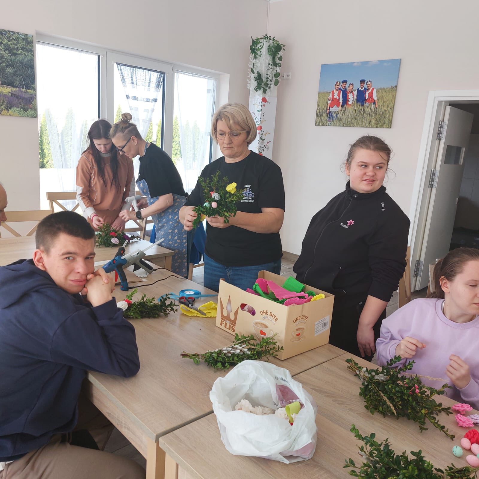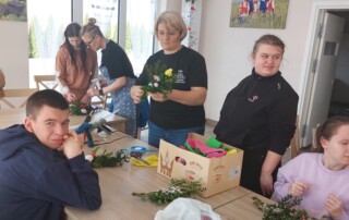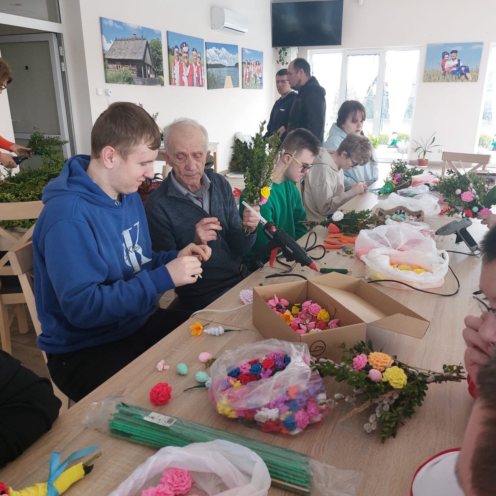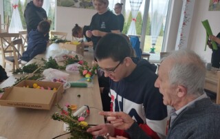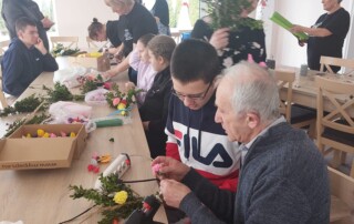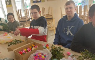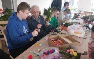 Uczestnicy z ogromnym entuzjazmem tworzyli kolorowe, tradycyjne palmy, rozwijając swoje umiejętności manualne i poznając piękne zwyczaje związane z Wielkanocą.
