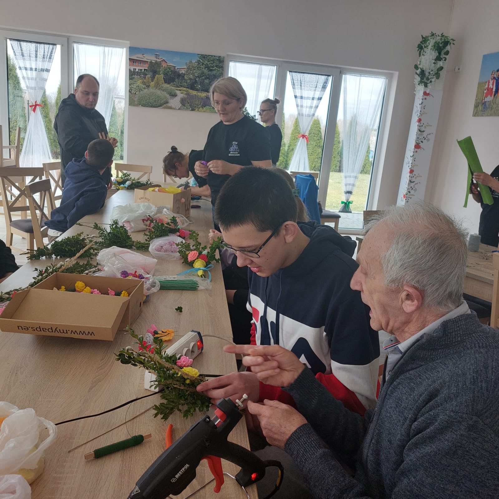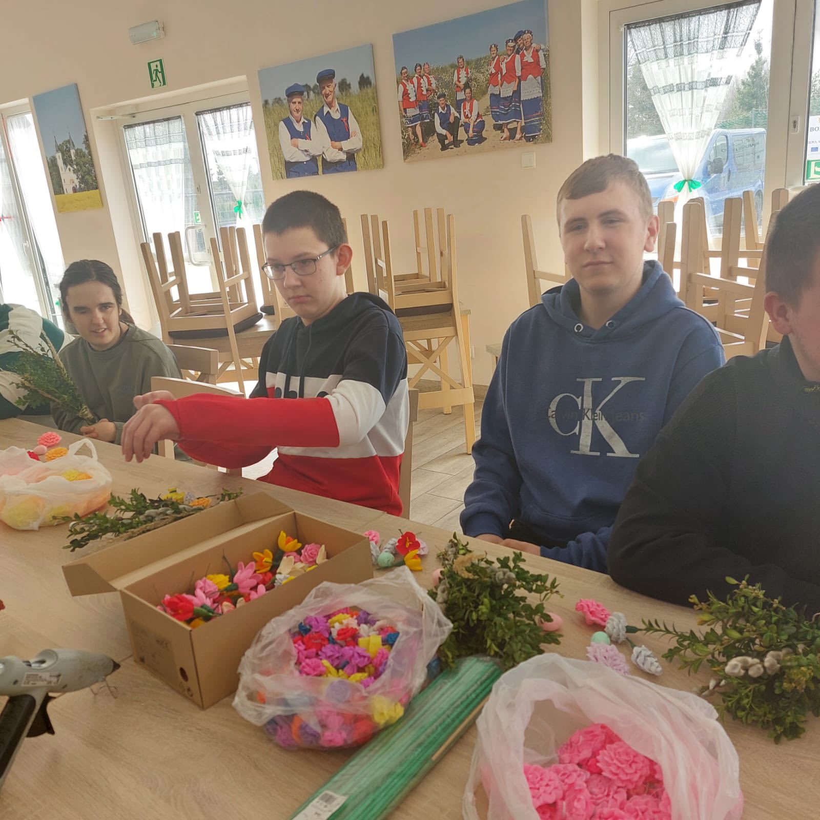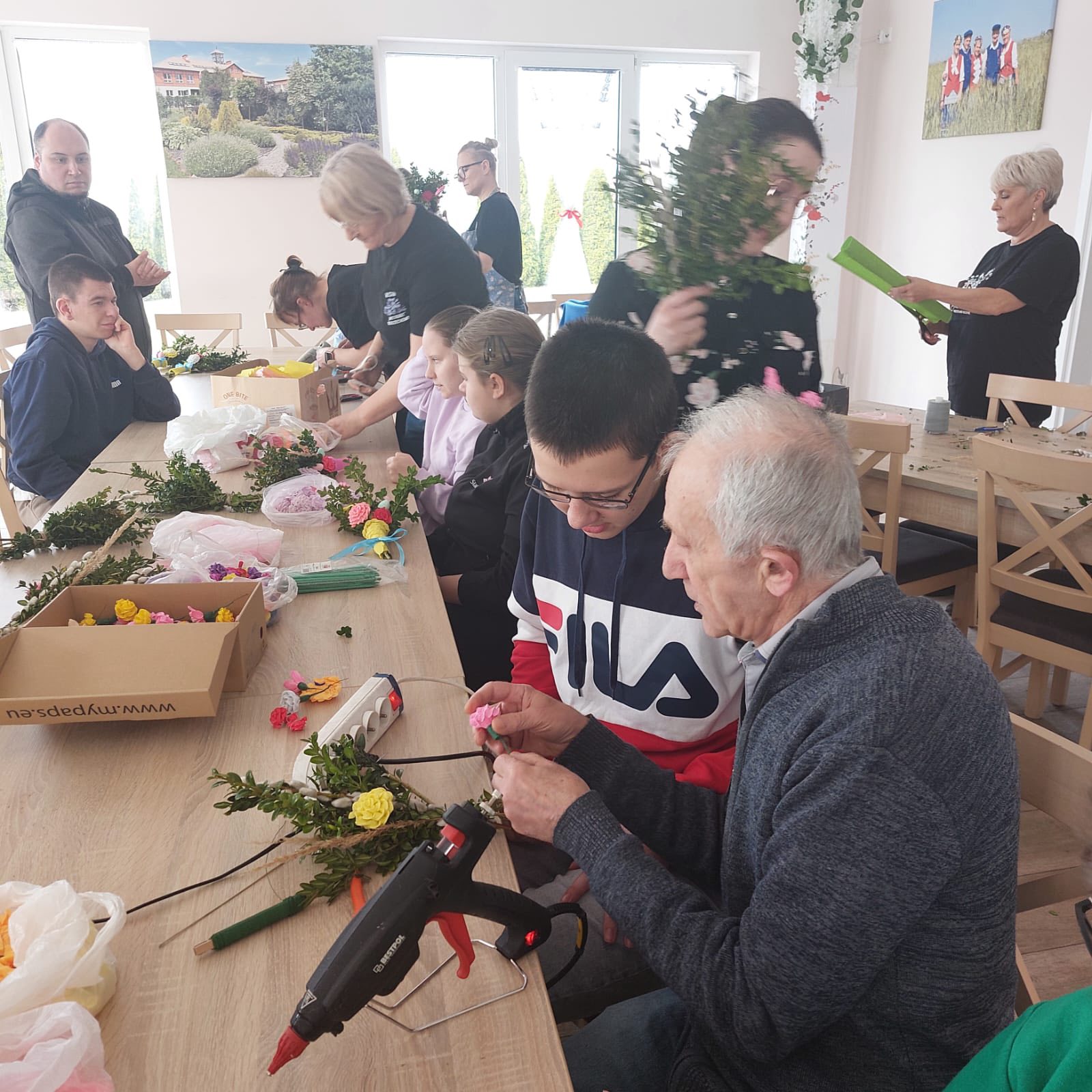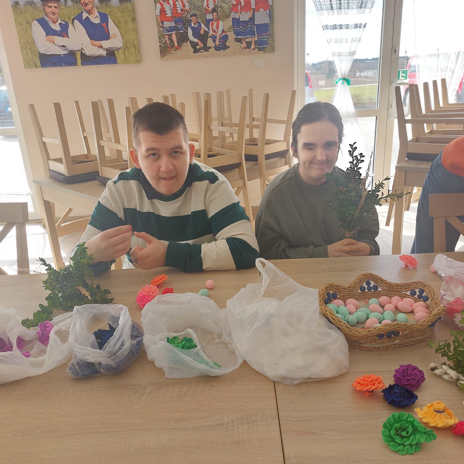 Uczestnicy z ogromnym entuzjazmem tworzyli kolorowe, tradycyjne palmy, rozwijając swoje umiejętności manualne i poznając piękne zwyczaje związane z Wielkanocą.