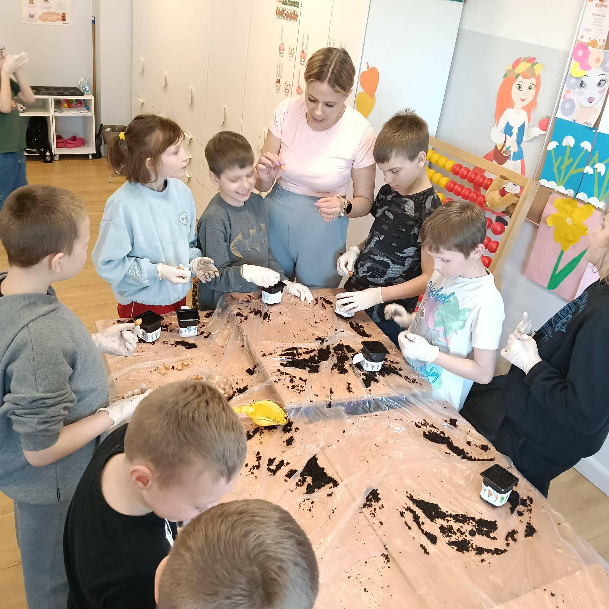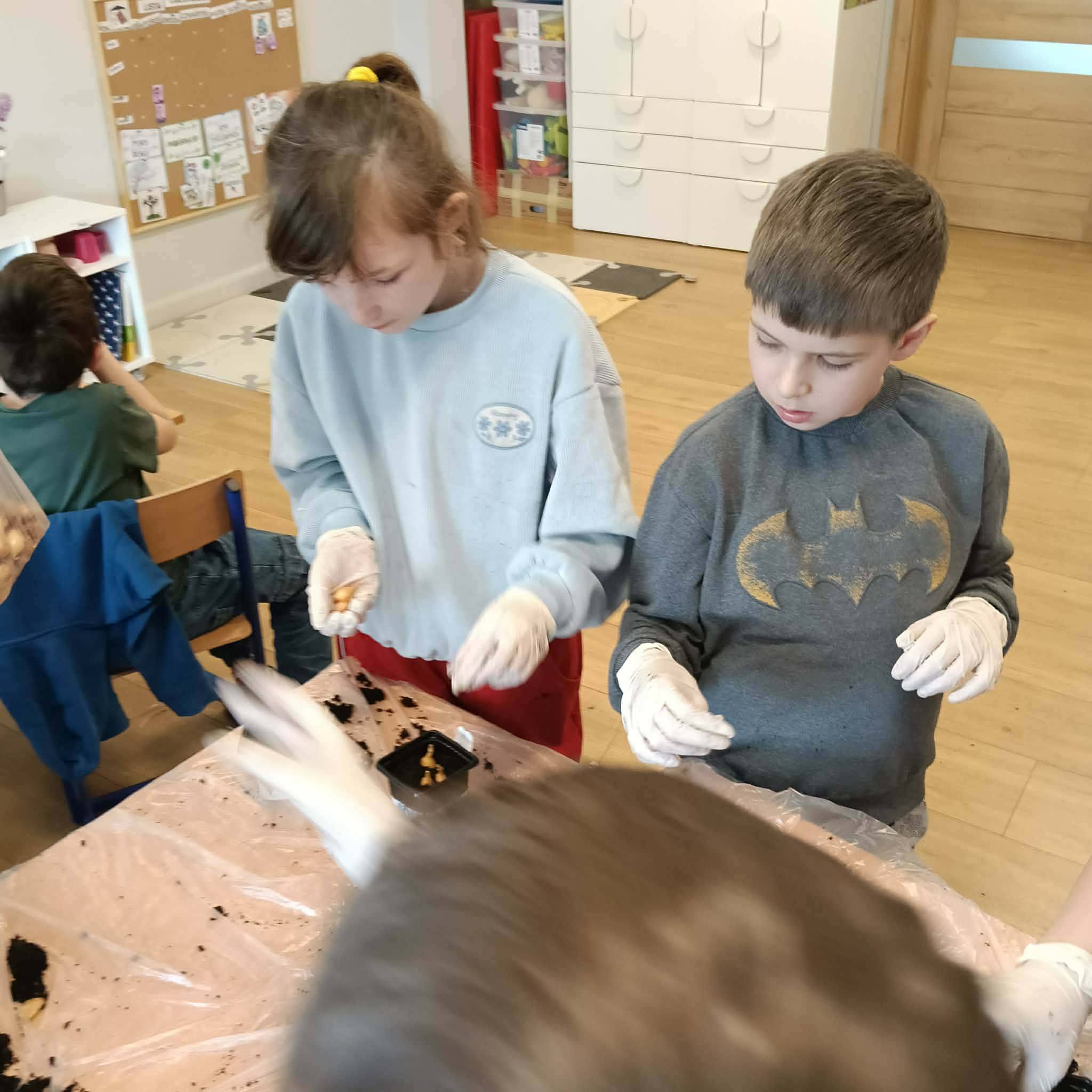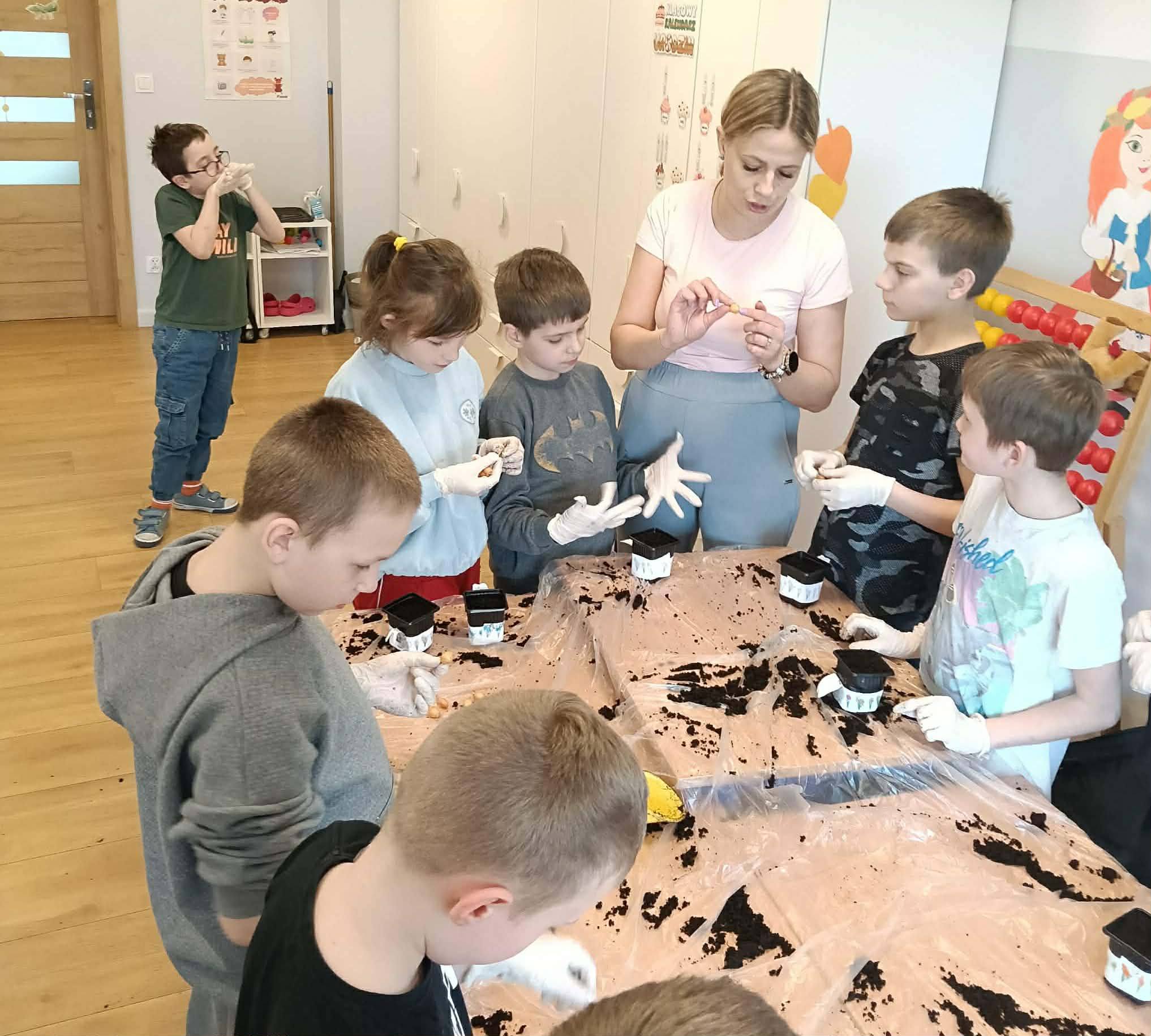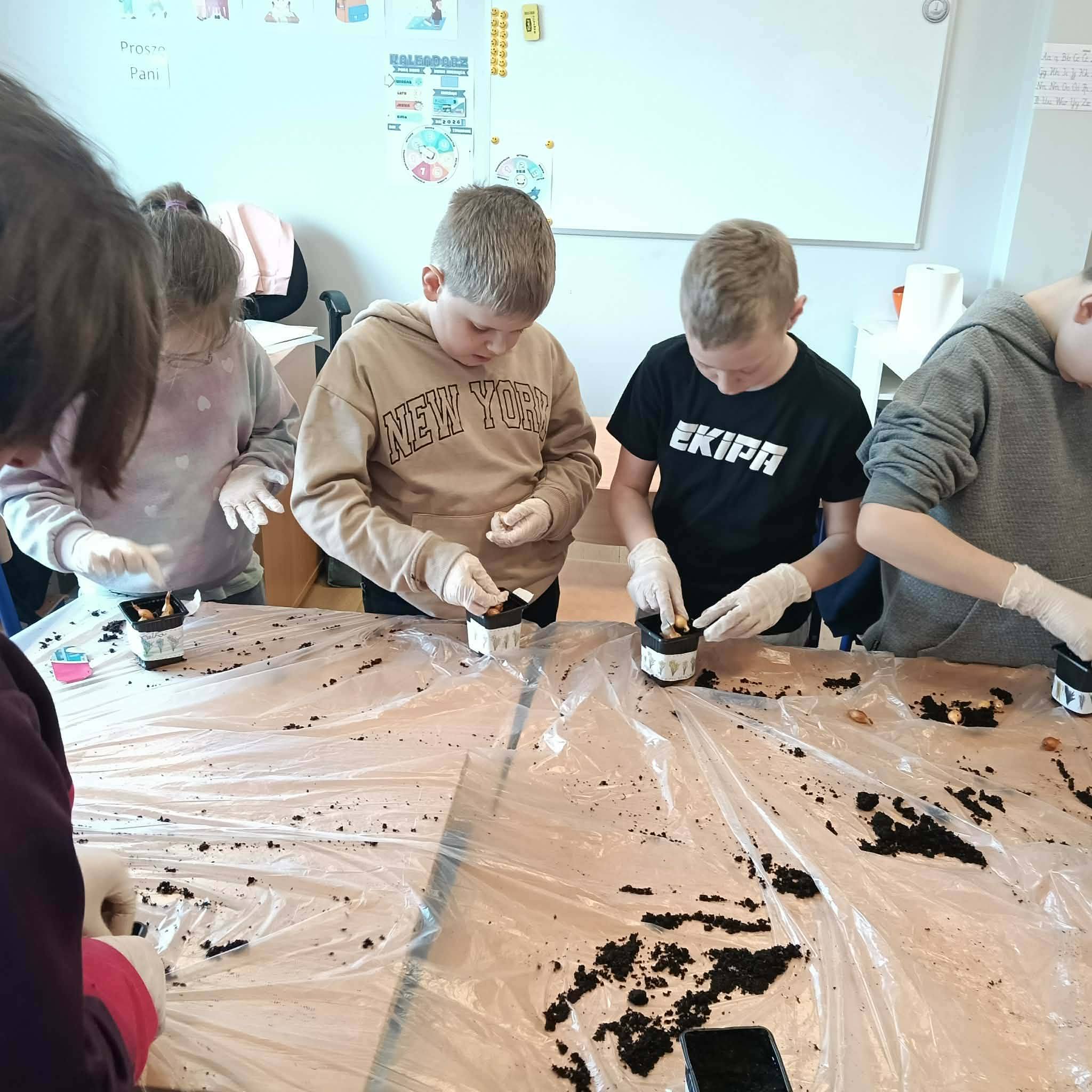 Z ogromnym zaangażowaniem sadzili cebulki, z których już niedługo wyrośnie świeży, zielony szczypiorek