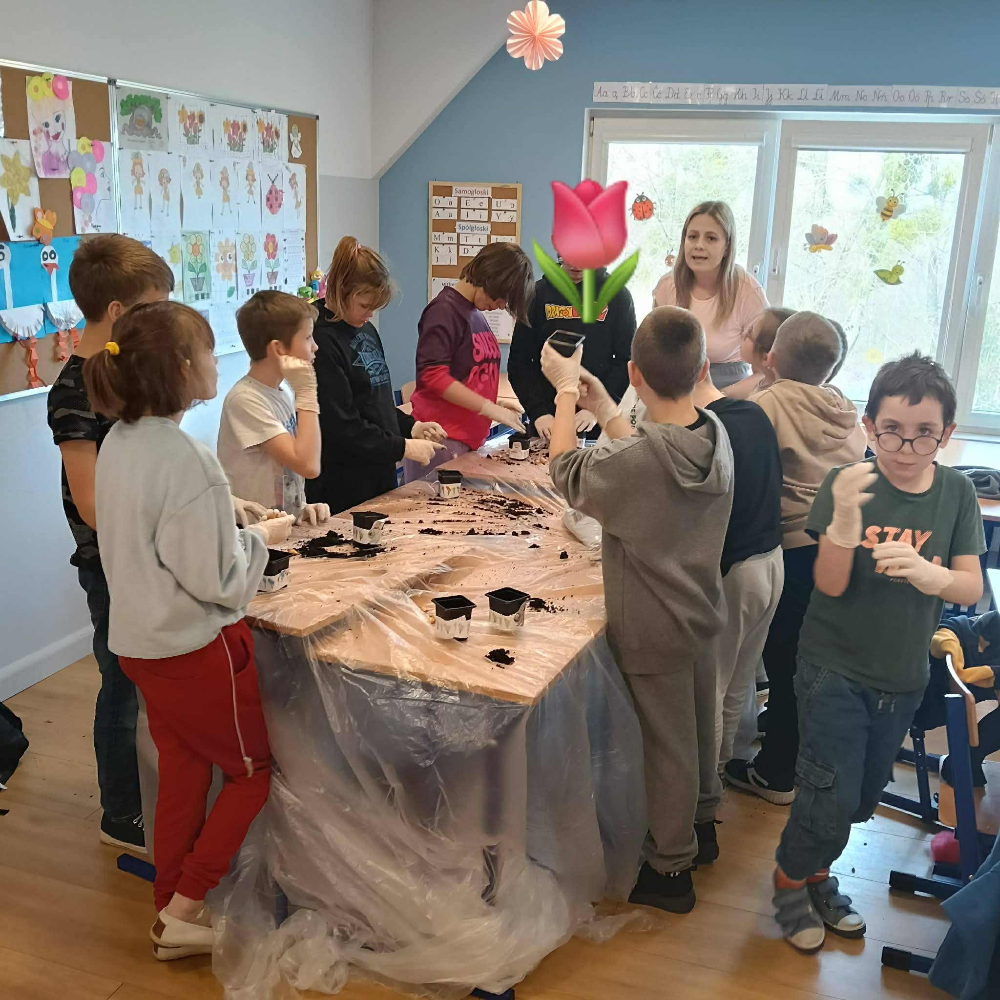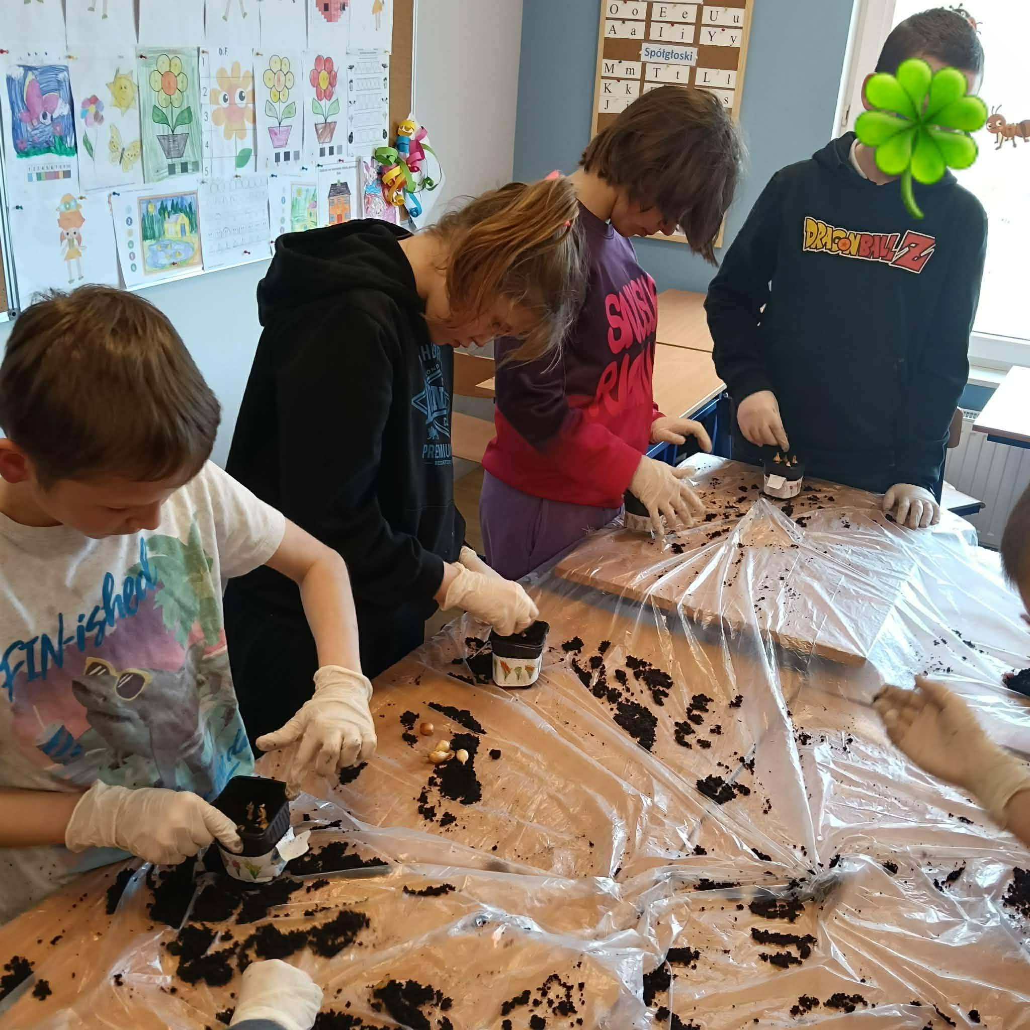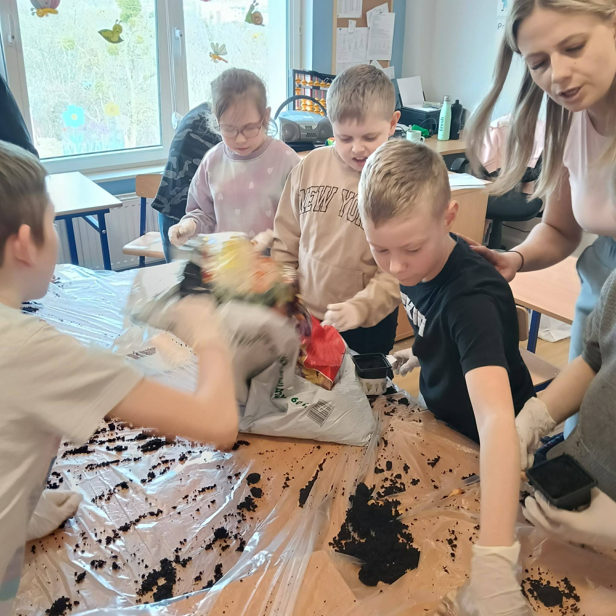 Uczniowie klasy 1c/2c/3c podczas zajęć z edukacji przyrodniczej zamienili się w małych ogrodników
