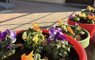 Czujemy że nadchodzi wiosna!!! Ułatwia nam przystrojone wiosennie otoczenie szkoły.